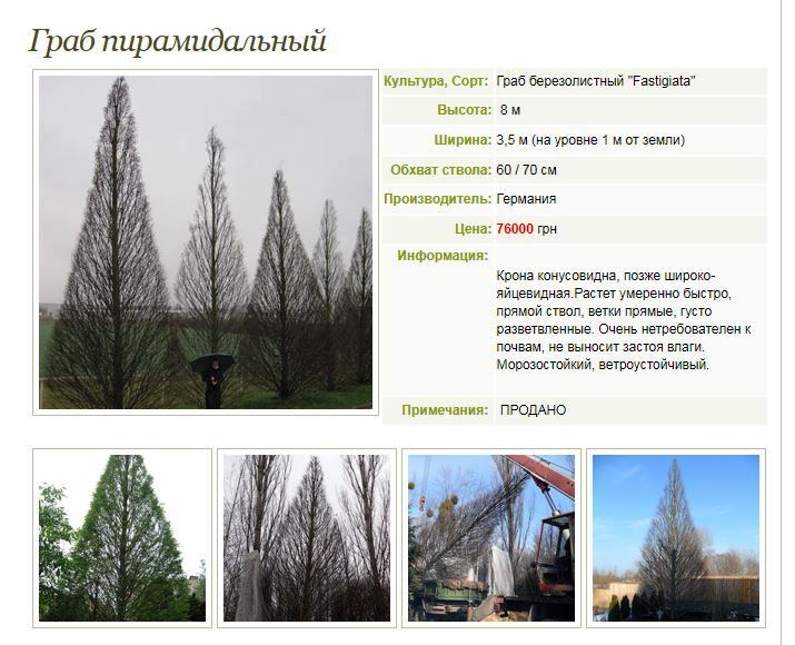 За 11 грабов «Фастигиата» 8 м высотой и 25 см толщиной с четырьмя формированиями корневой системы  заплатили 294 000 грн за штуку вместо рыночных 76 000.