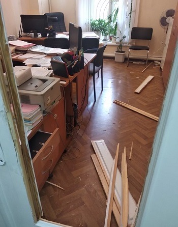 Во время вчерашней рейдерской атаки в университете разбили двери и окна, разбили компьютерную технику, сломали мебель. «Крушили университет целенаправленно, выламывали двери, распыляли огнетушители и слезоточивый газ. По нашим оценкам, материальный ущерб от вчерашнего захвата достигает 300 тысяч гривен. А сколько всего таких нападений было совершено за последний год, сложно сосчитать», — добавил Константин Талалаев.