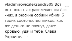 "Украинцы гибнут от рук русских наемников, а она ж*пой крутит перед их народом в их столице. Позор", "Вот пока ты развлекаешся, Аня, а русские собаки убили 6ы твоих соотечественников, как же деньги не пахнут, даже кровью, удачи тебе, Слава Украине", – возмутились в сети.