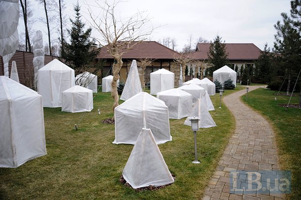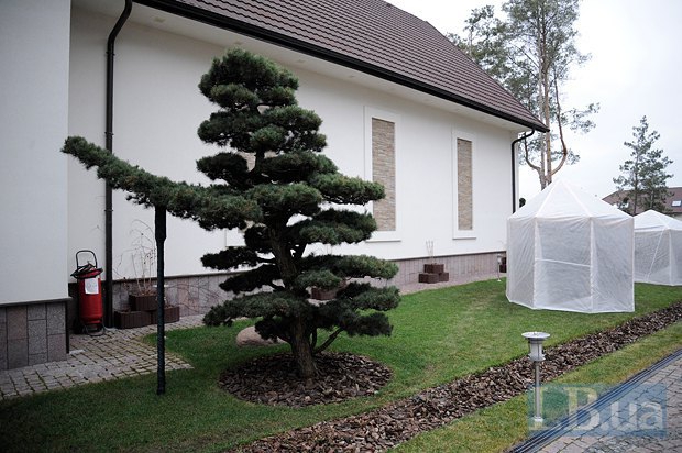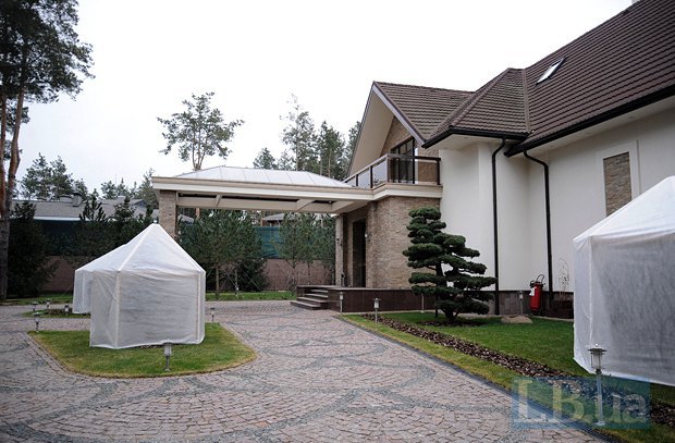 Журналистов пустили на территорию дома экс-министра внутренних дел Виталия Захарченко. Дом расположен в селе Подгорцы приблизительно в 27 километрах от Киева. На территории, кроме основного дома, расположены гараж, дом для охраны, теннисный корт. Также недалеко от имения находится вертолетная площадка и ангар для вертолетов. Территория имения ухоженная, возле домов много деревьев, есть даже небольшое искусственное озеро. Внутрь дома журналистам попасть не удалось.