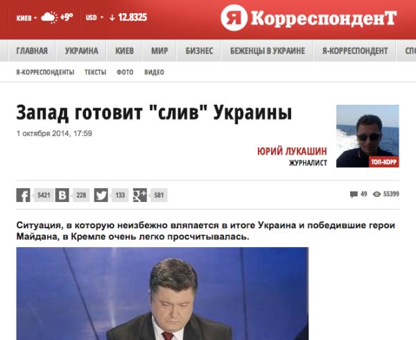 Теперь нам предстоит ознакомиться с безусловным лидером в сфере внедрения агрессивной пророссийской риторики в информационное пространство Украины. Это сайт Korrespondent.net, который по ряду позиций может дать фору таким откровенно пропагандистским российским ресурсам, как Life News или «Вести.Ru».