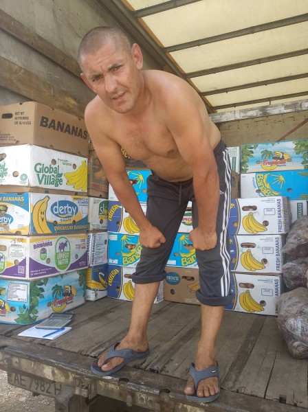 Пережидает жару в своем «Икарусе», купленном и переоборудованном восемь лет назад с пассажирских на грузовые перевозки - вместимостью 14 тонн. Так его здесь и знают: «Сергей на Икарусе». Сергей - холеный южным солнцем человек предпенсионного возраста, из одежды на нем цепочка из фальшивого золота и бежевые шорты, из-под которых виднеется резинка с надписями «Мачо» вдоль нее.