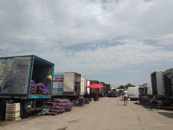 Олег из Кременчуга уже 12 лет работает по той же схеме, что и Джамиль, только его сезон - до октября. Есть определенная закономерность: чем больше фура, то дальше она едет. На рынке много бусиков грузят на Херсон, Николаев, Одессу. Бригада же Олега в час дня заполнила уже четвертую фуру.