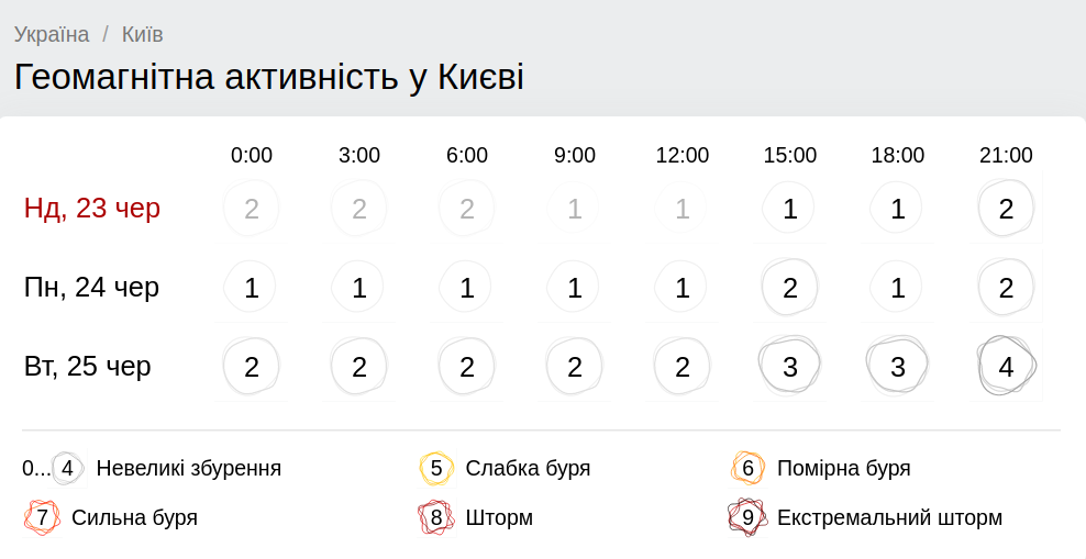 Геомагнитная обстановка в Киев 23 июня будет достаточно спокойной. Ожидать стоит лишь небольших возмущений.