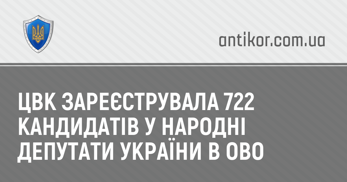 ЦВК зареєструвала 722 кандидатів у народні депутати України в ОВО