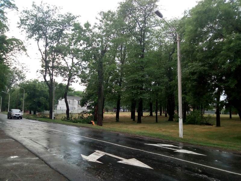 В результате сильных порывов ветра на проспекте Суворова, улице Ивана Франко, Пушкина, Нахимова, Соборной, Гагарина, Пароходной и других упали ветки деревьев, кое-где и вовсе упали целые деревья. В некоторых районах города оборваны линии электропередач, а улицы превратились в настоящие реки.