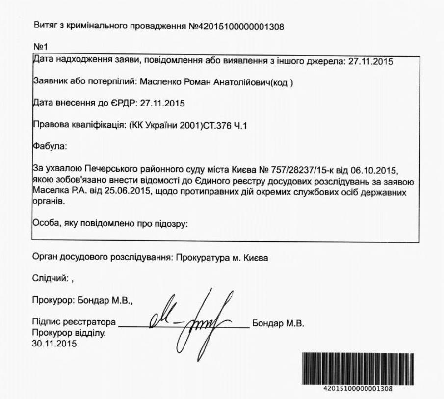 Свого часу Автомайдан домігся, щоб за цим фактом було зареєстроване кримінальне провадження. Ще у листопаді 2015 року прокуратура Києва розпочала розслідування та мала перевірити, чи відповідають слова Чернушенка про тиск з боку Олексія Філатова дійсності та чи є там ознаки злочину. Представника Автомайдану допитали, а от про допит пана Філатова нічого невідомо. Минуло 3,5 роки, але жодних результатів у розслідуванні немає. Можливо, голові Ради суддів України також варто звернути увагу на цю справу і вимагати належного розслідування фактів впливу на суд.