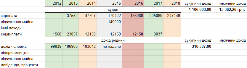 Загалом, якщо підбити фінансові підсумки Ольги Валентинівни, в середньому за сім років вона мала трохи більше 15 тис. грн місячного доходу.