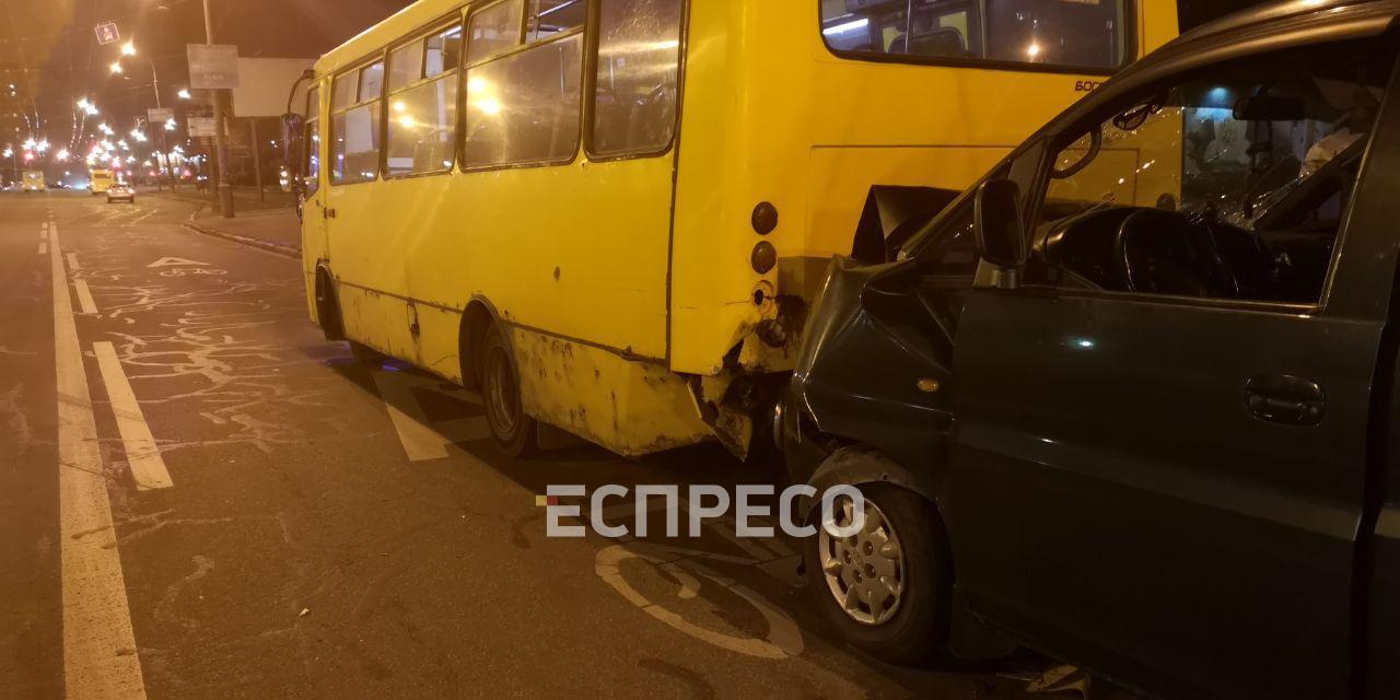 У Києві Hyundai протаранив маршрутку з пасажирами, є постраждалі