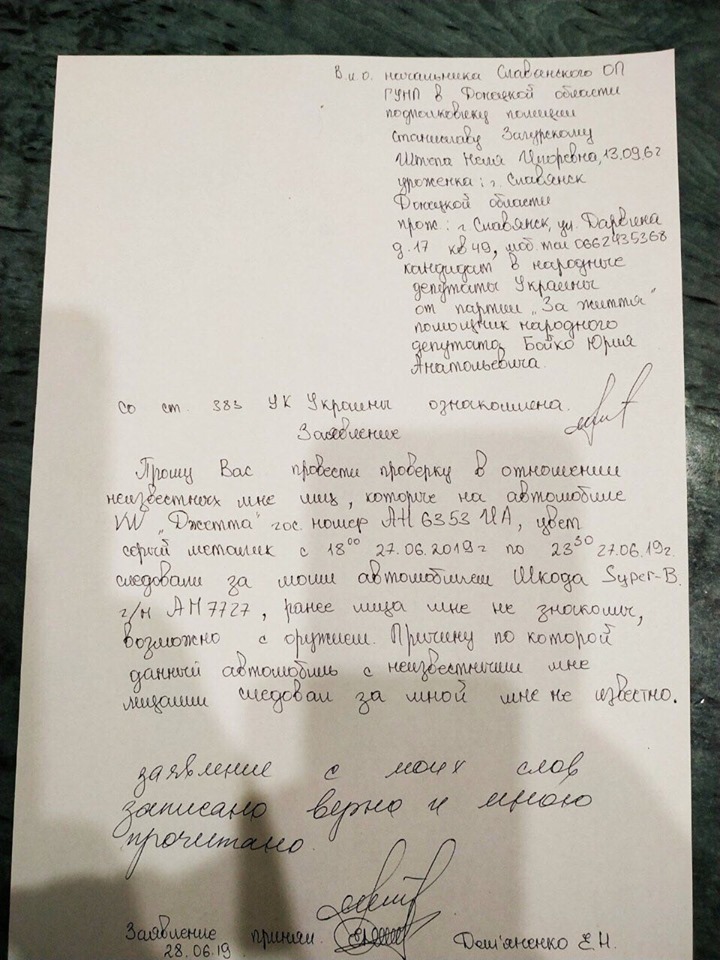 «Три дня назад я заметила, что за нами по городу постоянно ездит один и тот же автомобиль. Я обратилась в полицию. Было страшно выезжать из дома, пришлось ночевать у знакомых, чтобы оторваться от преследования. Неизвестные караулили меня возле моего дома, сопровождали по городу, чуть не спровоцировали аварию, бросив «ежей» под колеса моего автомобиля», – заявила Штепа.