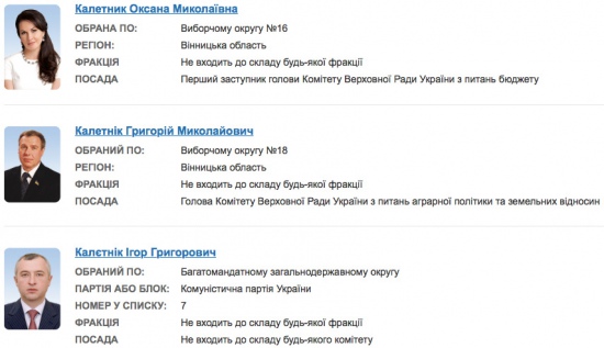 При цьому тональність згадок була вкрай негативною і стосувалася тотальної корупції як результату діяльності представників цього політичного клану. Ненажерливість “регіоналів” та комуністів, до лав яких входили Ігор Калєтнік, його сестра Оксана Калетник і глава сімействаГригорій Калетнік, вражає.