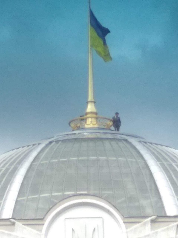 Опубликованы фото человека, похожего на Зеленского, который залез на купол Рады