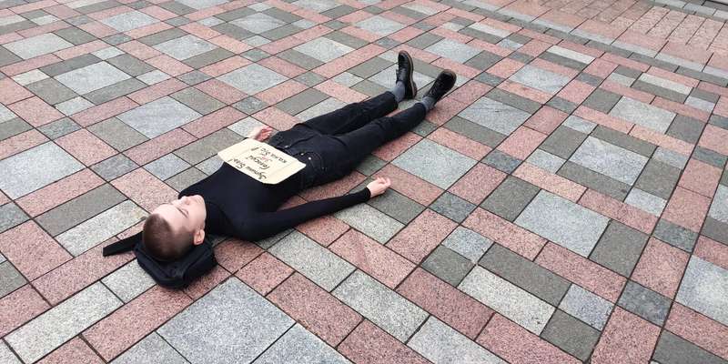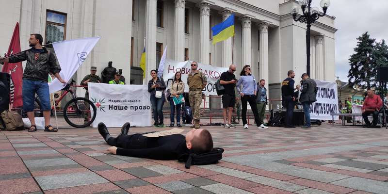 Девушка провела одиночный лежачий пикет под Радой, требуя легализации медицинской марихуаны