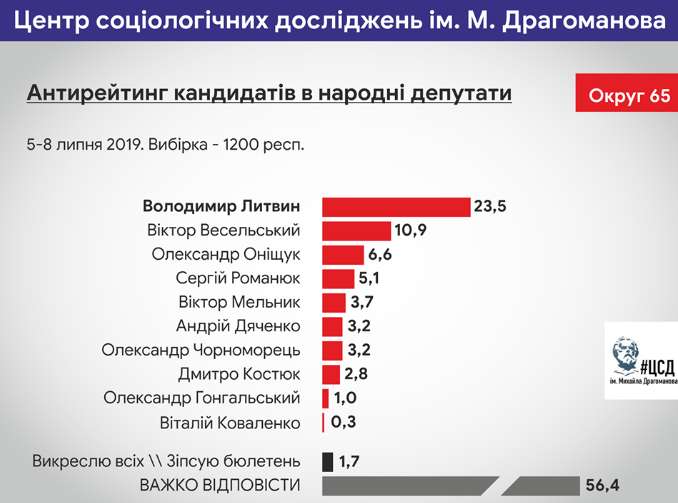 4-8 липня Центр соціологічних досліджень імені Михайла Драгоманова проводив опитування громадської думки в мажоритарному виборчому округу № 65 (центр виборчого округу – м. Новоград-Волинський Житомирської області) з метою вивчення соціально-політичної ситуації в округу.