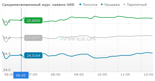 С утра курс изменился не сильно. Продажа составляла 25,61 грн, а покупка - 24,52 грн.