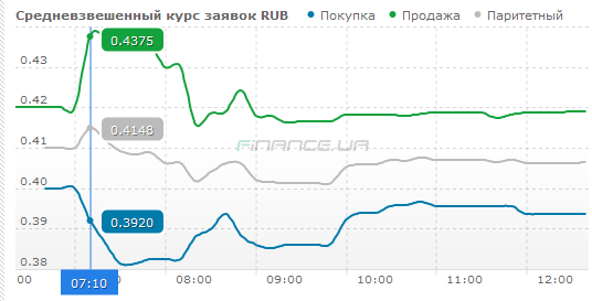 При этом на 7:00 утра курс покупки составлял столько же, а продажи - 0,43 грн.