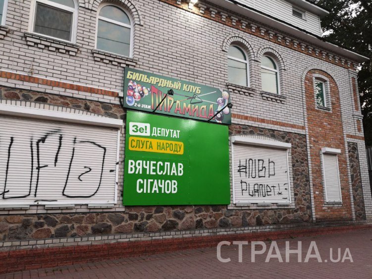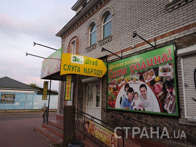 На каждом шагу – агит-палатки и борды Пашинского. Чуть меньше – у Арешонкова. У Сигачева от "Слуги народа" – ни одного. Кроме, разве что единственной вывески возле "ЗЕштаба", расположенного в здании продуктового магазина, бильярдной и парикмахерской.