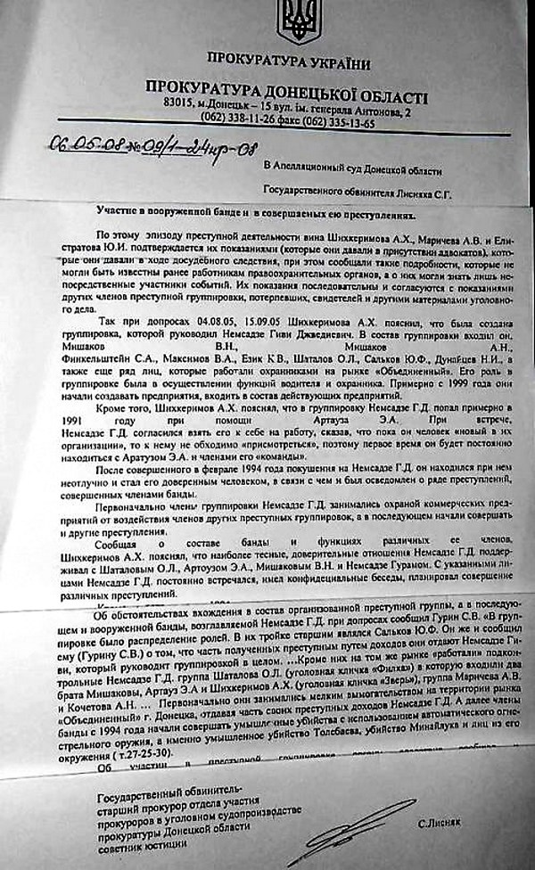 Именно в этот период Донецкая область была превращена в царство двойного ужаса: с одной стороны, криминальной донецкой мафией, сраставшейся с донецкими чиновниками, а с другой — мафией прокурорской. И если Ринат Ахметов со товарищи утоляли свои финансовые аппетиты приватизацией крупных рентабельных предприятий, то прокурорские продолжали вытряхивать деньги из среднего и малого бизнеса – нередко просто забирая себе (или по чьему-то заказу) сам бизнес.