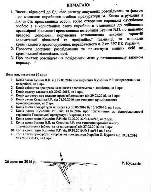 Тогда около 40 сотрудников столичной прокуратуры устроили демарш против Кузьмина: подписали обращение к Ющенко, а старший следователь Алексей Белый выступил от их имени в эфире «5 канала». Вряд ли это было выступление «честных прокуроров» против «коррупции и жестокого давления», как они пытались изобразить, просто между местными киевскими и приезжими донецкими прокурорами изначально возникли большие трения. Когда же начался Майдан, киевские прокуроры решили воспользоваться возможностью сбросить «иго донецких». Однако власть Рената Кузьмина в столичной прокуратуре была сильна: он даже сумел заставить начальников управлений начать сбор подписей под заявлением о том, что «обращение сорока прокуроров» является фальшивкой и провокацией.