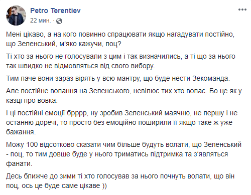 Блогер Петро Терентьев уверен, что взгляды сторонников Зеленского после инцидента не изменяться.