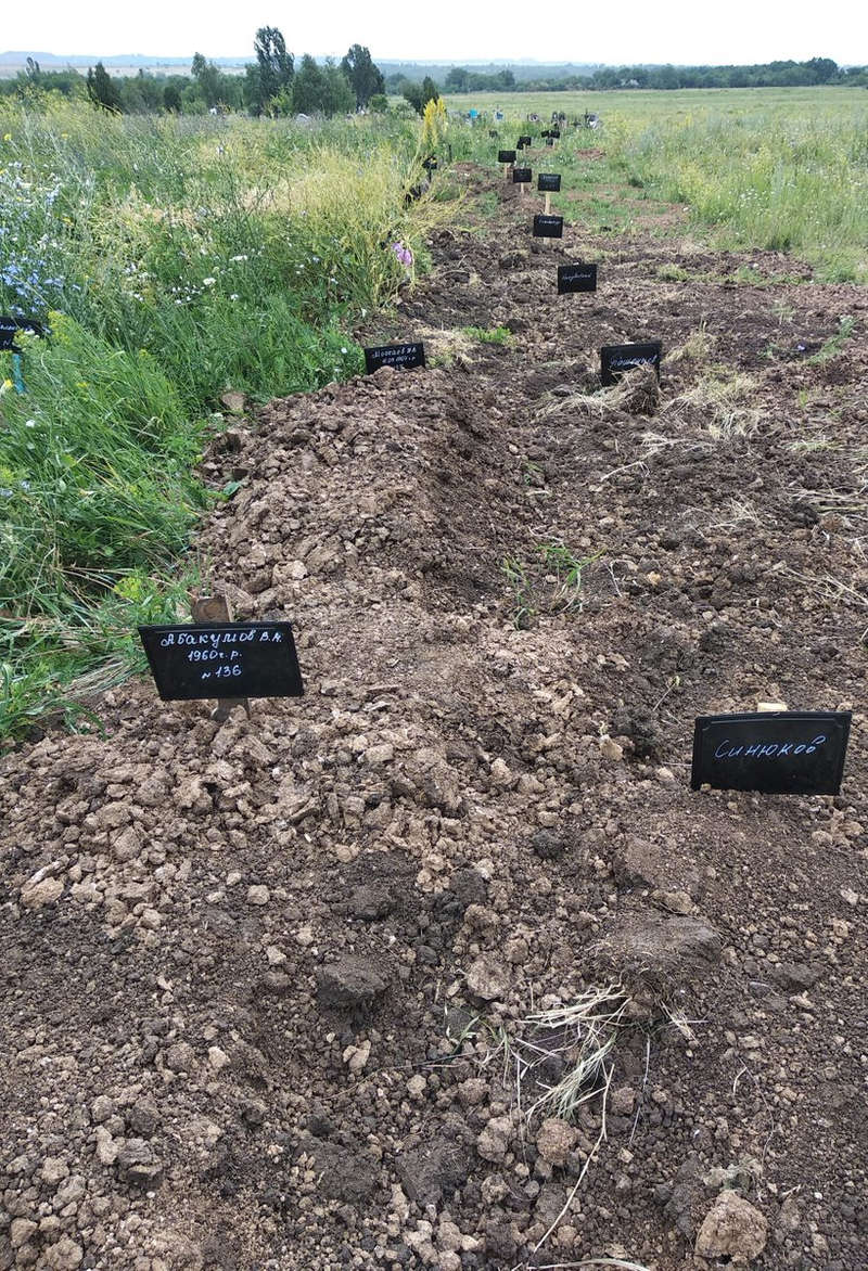 На фото видно, что на кладбище в Енакиево подготовлены новые могилы для погибших.