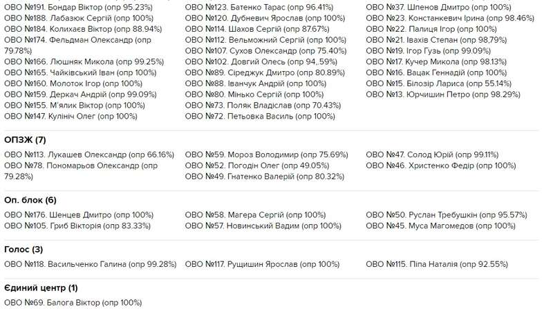 Так, больше всего голосов получает партия “Слуга народа” – 43,14%. Следующие проходные партии расположились таким образом: “Оппозиционная платформа – За жизнь” – 13,02%; “Европейская солидарность” – 8,18%; ВО “Батьківщина” – 8,12%; “Голос” – 5,84%.