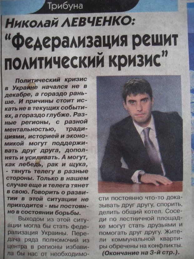 Интервью Левченко с прямым призывом к смене конституционного устройства Украины