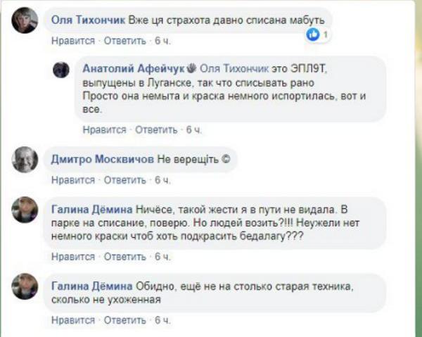 «Ребята, ну это же реальная жесть! Ну КАК на вот ТАКОМ можно возить людей??? Не езжу на электричках уже много лет, но вчера мы решили попробовать. Больше пробовать не хочу! Направление Киев — Казатин. Бедные люди, которые вынуждены ехать в таких „скотовозках“ каждый день», — написала женщина.