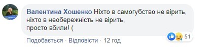 В комментариях под сообщением Копытько люди пишут, что не верят в самоубийство Тымчука.
