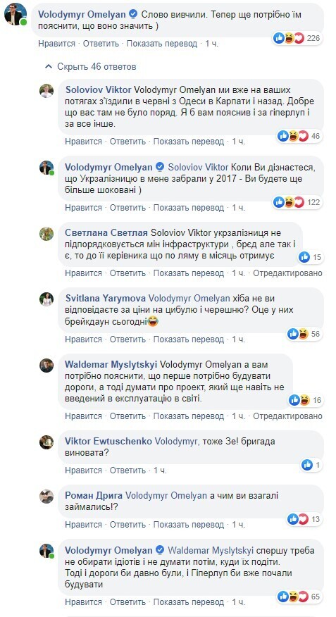 Министр пришел в комментарии под видео УП с Разумковым и начал там в свою очередь подкалывать Разумкова: "слово выучили. Теперь еще нужно им объяснить, что значит)".