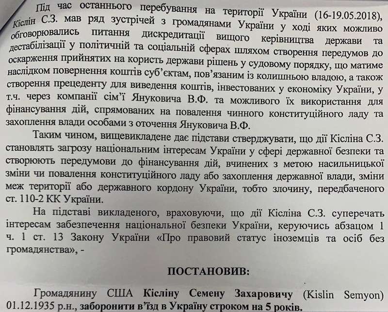 Напомним, что в 2018 году СБУ поставил запрет на въезд в Украину Сэму Кислину, который отменил Баканов.