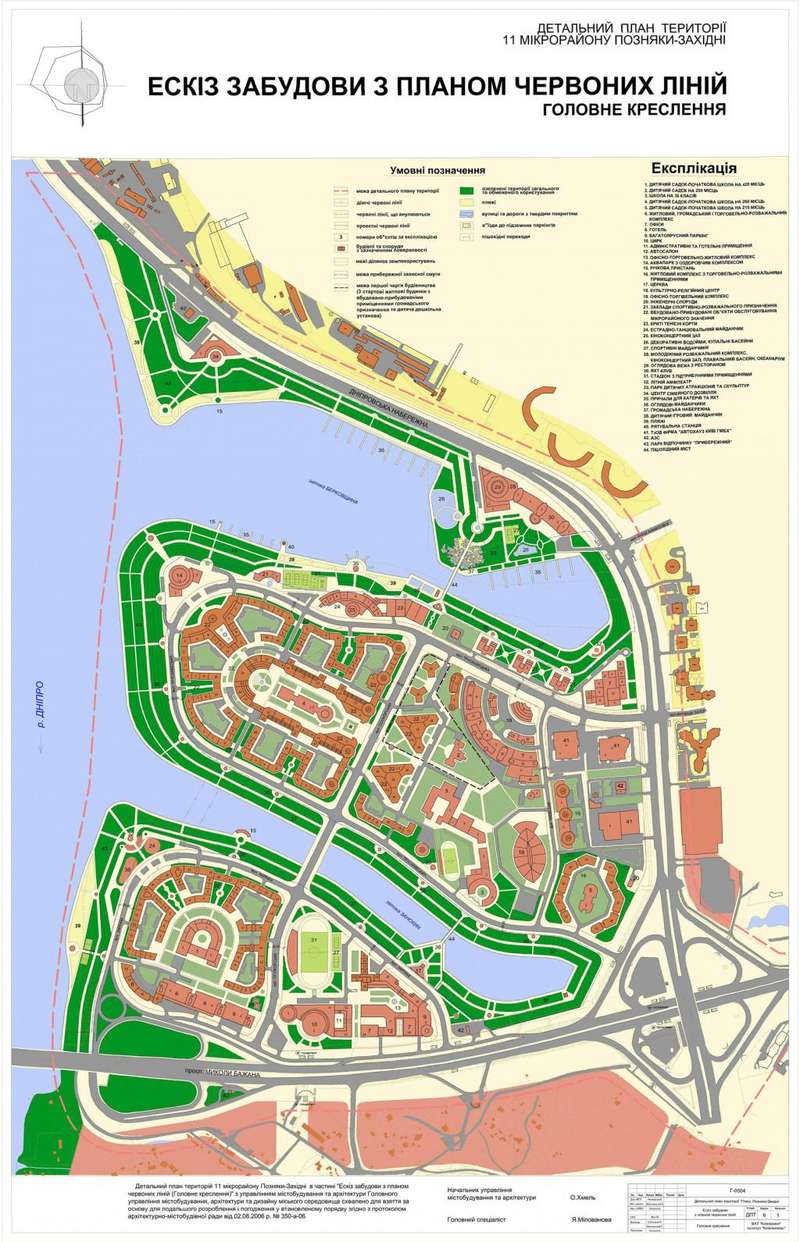 Документы на комплексную застройку выдали четырем компаниям: ООО “Академ-Клуб” (ТОВ “Академ-Клуб”) (*), ЧП “Фирма “Витория” (ПП “Фірма “Вікторія”) (**), ЧП “Орест” (ПП “Орест”) (***) и Религиозная организация “Христианская религиозная община “Посольство благословенного Царства Божьего для всех народов”. Согласно ГУО, строительство планируется в 11-м микрорайоне жилого массива Позняки-Западные, на Днепровской набережной (район залива Берковщина, а также между Киевским городским крейсерским яхтклубом и ООО “Княжий затон”) в Дарницком районе. В частности, застраивать планируют пять участков.