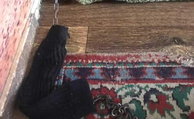 Для трьох наймолодших дітей жінка є опікуном. Під час відвідування родини співробітники ювенальної превенції спільно зі службою у справах дітей виявили 8-річного хлопчика із зав’язаними очима, прикутого ціпком до дивану та обмотаного скотчем.
