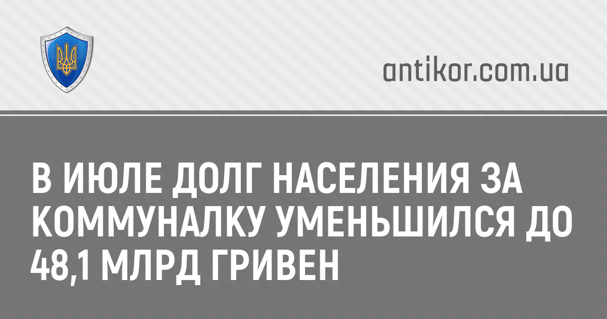 В июле долг населения за комунальные услуги уменьшился на 4%, до 48 млн 140 тыс. грн по сравнению с июнем. Такие данные появились на сайте Госстата.