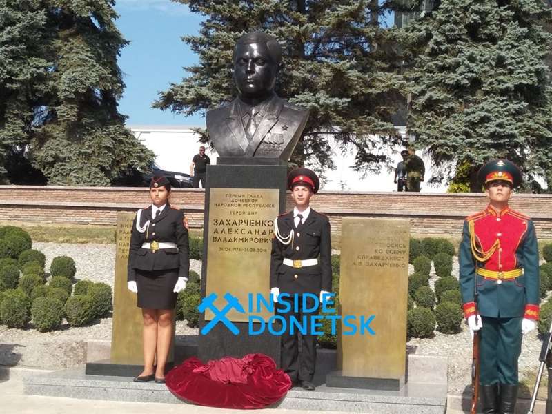 Как стало известно, бюст изготовлен по заказу уроженца Донбасса мецената Владимира Некрасова. Возле памятника установлены две плиты. На одной из них выгравирована «цитата» Захарченко: «Живи свободным, поступай по совести, относись ко всему справедливо». На второй плите надпись: «Отдавшему жизнь ради тысяч других сердец. Навсегда первому Главе ДНР».