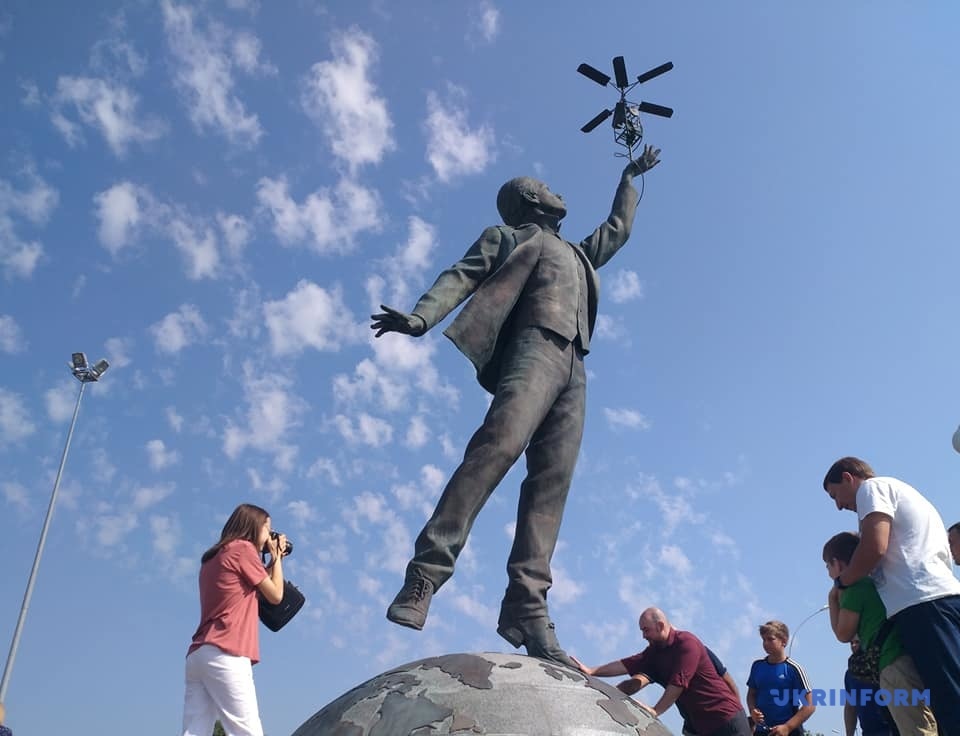 Мер Києва Віталій Кличко відкрив пам’ятник видатному авіаконструктору Ігорю Сікорському, що встановили біля столичного аеропорту ім. Сікорського (колишній аеропорт “Жуляни”).