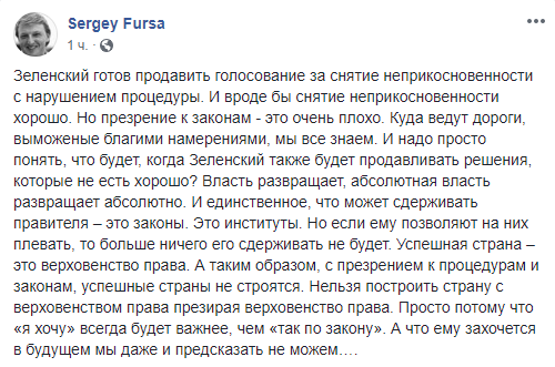 Инвестиционный банкир Сергей Фурса также акцентировал на нарушении процедуры. По его мнению, верховенство права должно быть приоритетом при принятии любых решений.