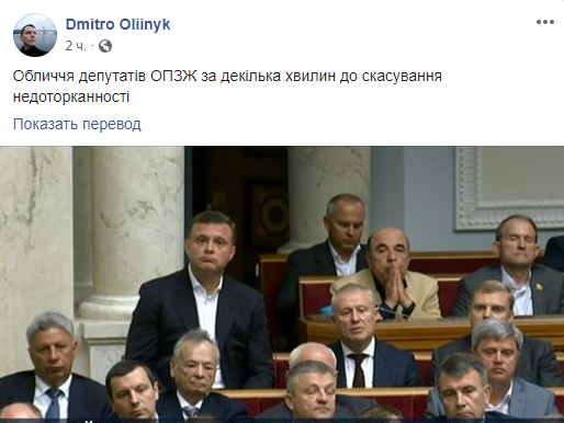 Журналист Дмитро Олийник напомнил, что нардепы о “ОПЗЖ” не голосовали за снятие неприкосновенности.