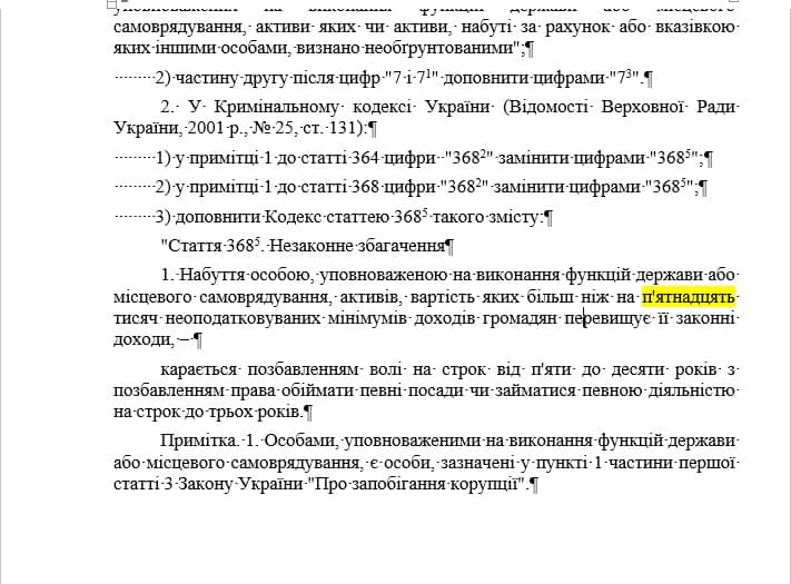 Ошибка найдена в президентском проекте под номером 1031. В тексте документа указано, что уголовная ответственность чиновника наступает, когда общая стоимость имущества превышает 15 тысяч необлагаемых налогом минимумов. При этом в сравнительной таблице указана цифра 12 тысяч.