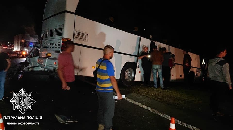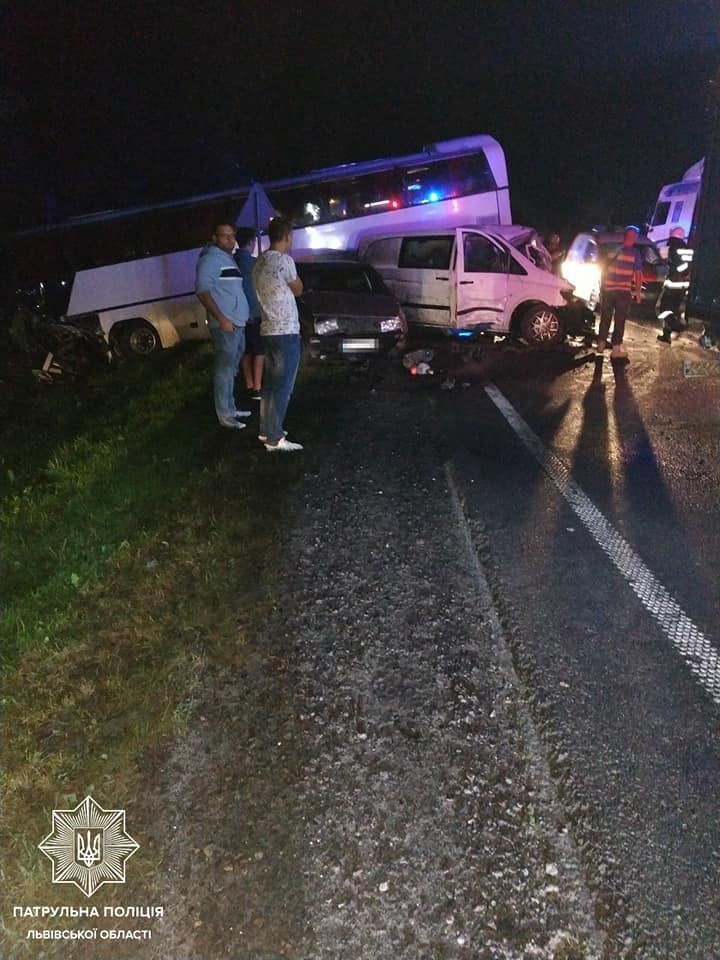 В результате аварии пострадали 14 человек. Водитель микроавтобуса погиб на месте ДТП. Об этом сообщает пресс-служба Патрульной полиции Львовской области.