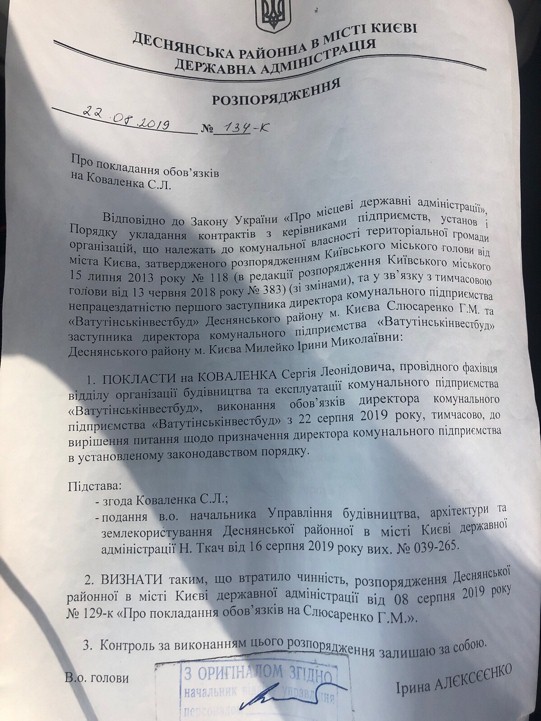 Так, Деснянський район обслуговує КП «Ватутінськінвестбуд». Останні 10 років ним керував Олег Воробей.