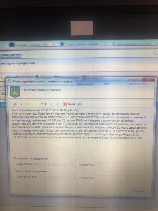 Відповідно, до Реєстру не можна внести зміни, що КП «Ватутінськінвестбуд» має нового керівника. Вже не Воробея, а Коваленка.