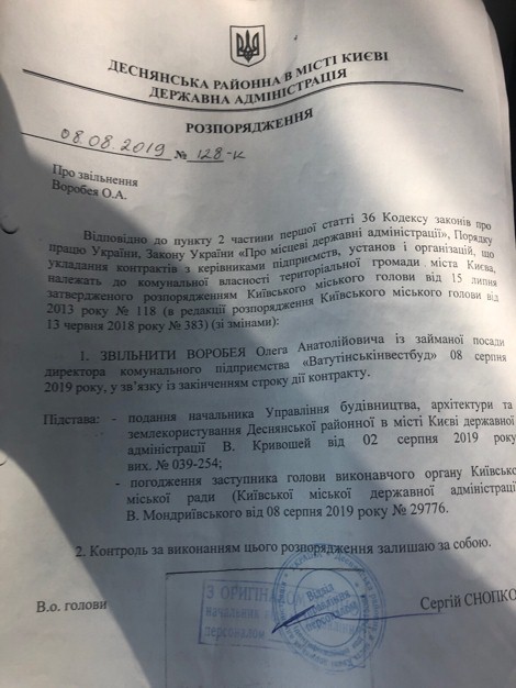 Політичні зміни в країні специфічно вплинули на Деснянську адміністрацію. З одного боку, натиск і громадськості, і контролюючих органів знизився. Але “хлопці” розслабилися. Комунальне підприємство системно порушувало терміни здачі в експлуатацію об‘єктів. Зрештою, у серпні Олега Воробея було звільнено.