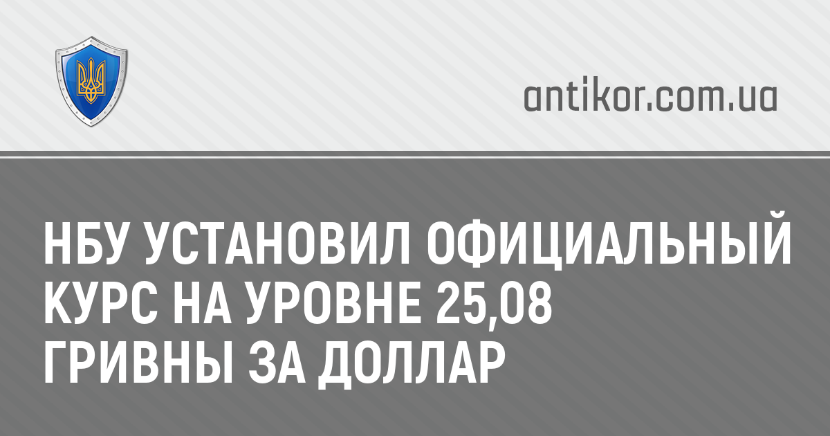 НБУ установил официальный курс на уровне 25,08 гривны за доллар