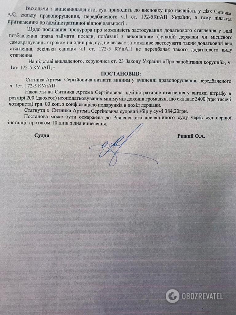 А совсем недавно Сарненский суд Ровенской области постановил, что директор НАБУ Артем Сытник виновнен в коррупционном правонарушении за то, что отдыхал в охотничьем хозяйстве "Полесье - Сарны". Это коррупционное правонарушение так как стоимость отдыха превышает ограничения, установленные законом относительно получения подарков.