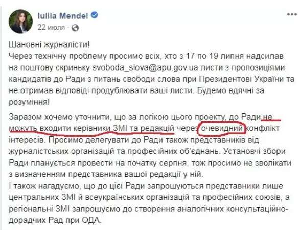 Ранее заместитель главы Офиса президента Кирилл Тимошенко публично обещал, что в Раду войдут по представителю от каждой редакции центральных СМИ. Чтобы защищать свободу слова и бороться с проявлениями цензуры.
