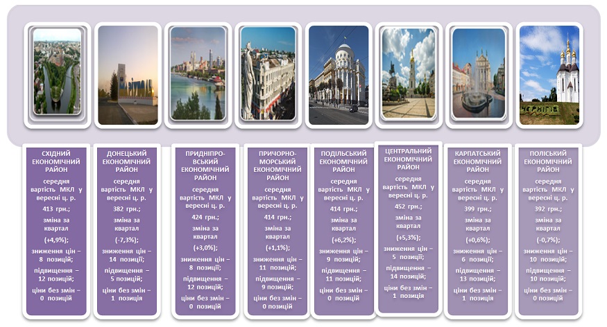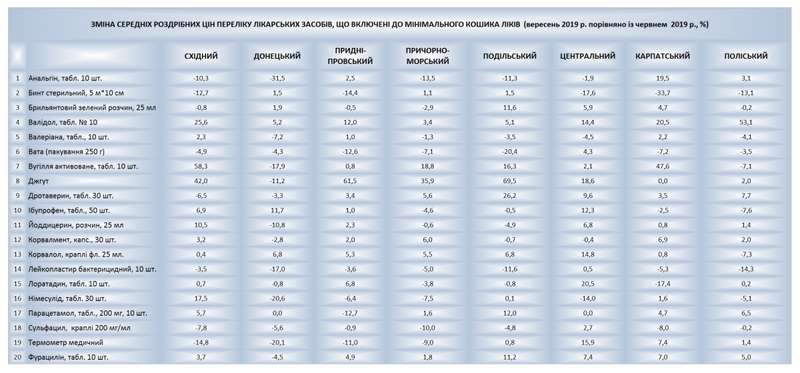 В течение квартала стоимость корзины лекарств выросла в шести районах: Карпатском, Причерноморском, Приднепровском, Восточном, Центральном, Подольском.