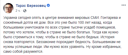 Политолог Тарас Березовец проводит аналогии с режимом большевиков в СССР, обвиняя в произошедшем вообще третьих лиц.