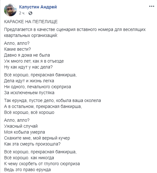 Журналист и блогер Андрей Капустин даже написал стихи.