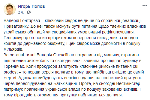 С комментаторами выше согласен и политик Игорь Попов. Также Попов считает, что у Гонтаревой нет шансов получить политическое убежище в Великобритании.